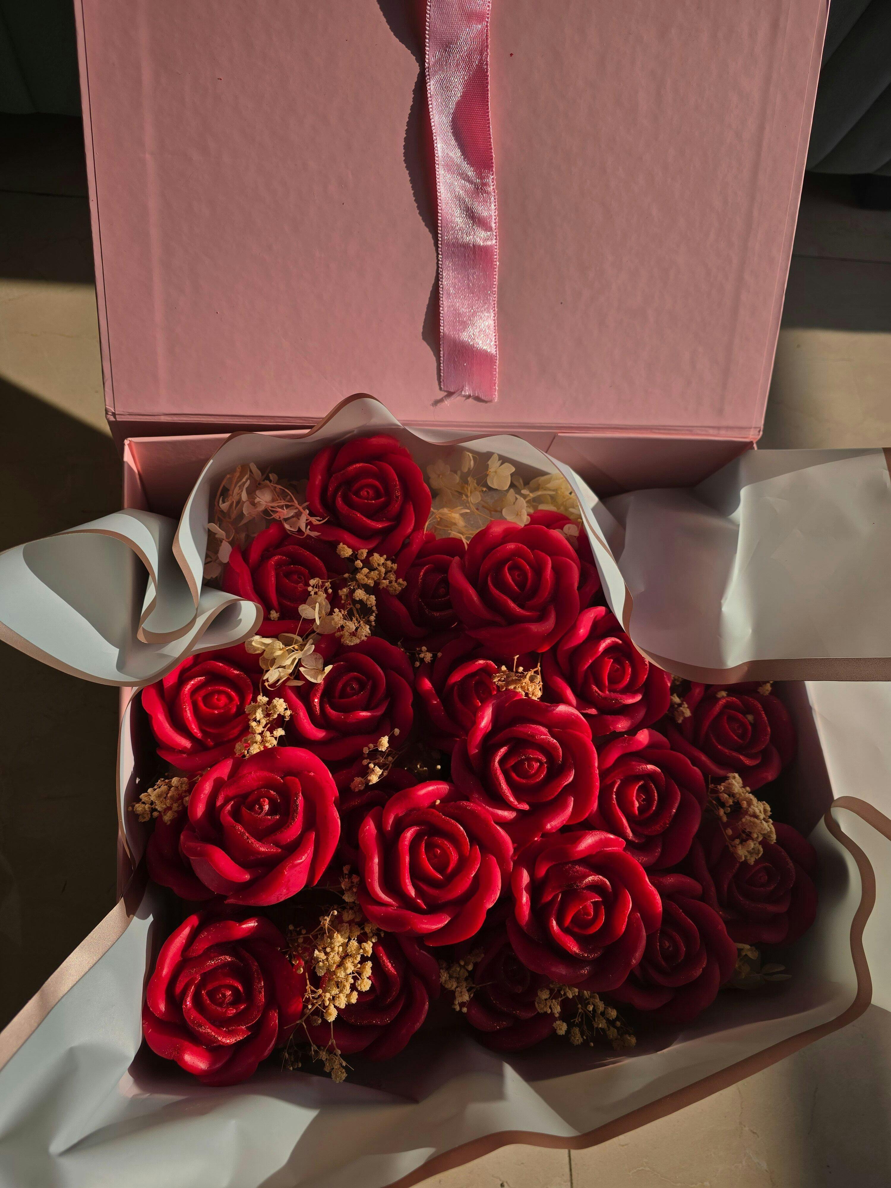 • Handcrafted rose-shaped candles with realistic detailing